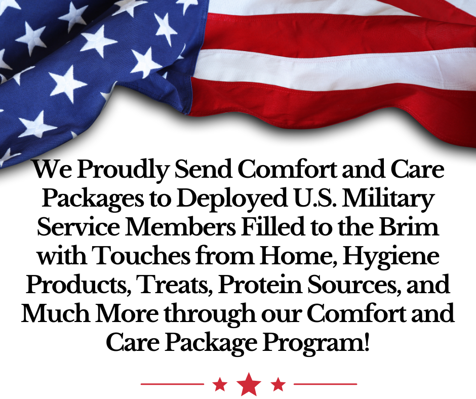 If you are deployed overseas with the U.S. Military or have a family member or friend that is, you can sign them up for one of our premium Care Packages through our Comfort and Care Package Program!